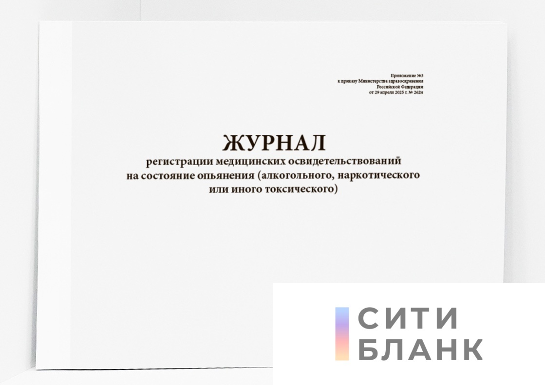 Журнал медицинского освидетельствования — официальный документ, который требуется медицинским организациям для ведения учета всех процедур по выявлению алкогольного, наркотического или токсического опьянения. Бланк утвержден Приказом Минздрава РФ No 262н от 29 апреля 2025 года и вступает в действие с 1 сентября 2025 года.