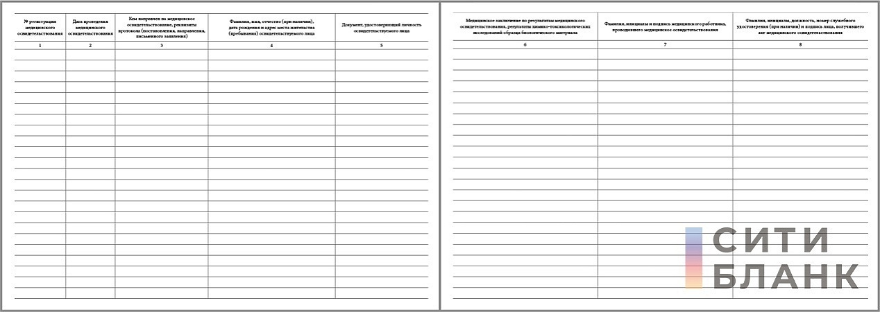 Журнал регистрации медицинских освидетельствований на состояние опьянения