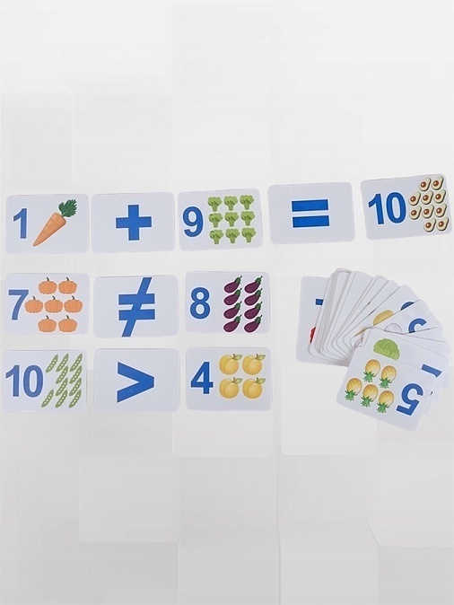 • Составьте пример: «1 морковка + 9 брокколи = 10». Ребенок видит картинку и лучше понимает действие.