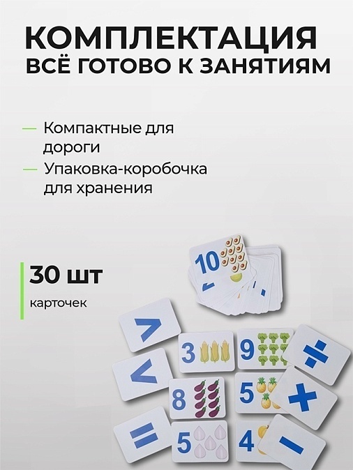 Обучение ребенка цифрам и первым примерам не обязательно должно быть скучным. С набором развивающих карточек «Цифры» малыш познакомится с миром чисел легко, весело и без лишнего напряжения. Яркие картинки с овощами и фруктами превращают занятия в игру, а безопасный материал делает карточки удобными даже для самых маленьких.